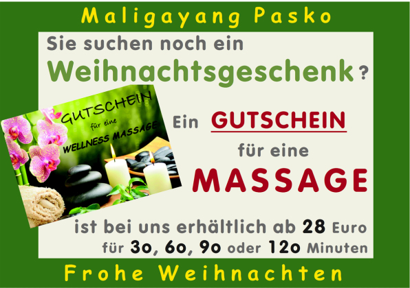 Überraschen Sie Ihre Liebsten mit einem Gutschein für eine Wellness Massage und schenken Sie Wohlbefinden und Regeneration.