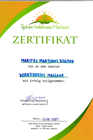 Maries Martinez-Zillmer verfügt ebenfalls über langjährige Praxis als Masseurin. Seit 2022 bringt sie ihre Fertigkeiten sehr erfolgreich zum Nutzen der Besucher von Lyns Wellness Massage ein.